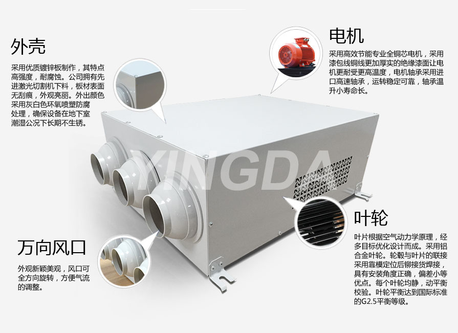 英達(dá)風(fēng)機(jī)采用優(yōu)質(zhì)鍍鋅板制作,其特點(diǎn)高強(qiáng)度,耐腐蝕。公司擁有先進(jìn)激光切割機(jī)下料,板材表面無刮痕,外觀亮麗。外出顏色采用灰白色環(huán)氧噴塑防腐處理,確保設(shè)備在地下室潮濕公況下長(zhǎng)期不生銹。