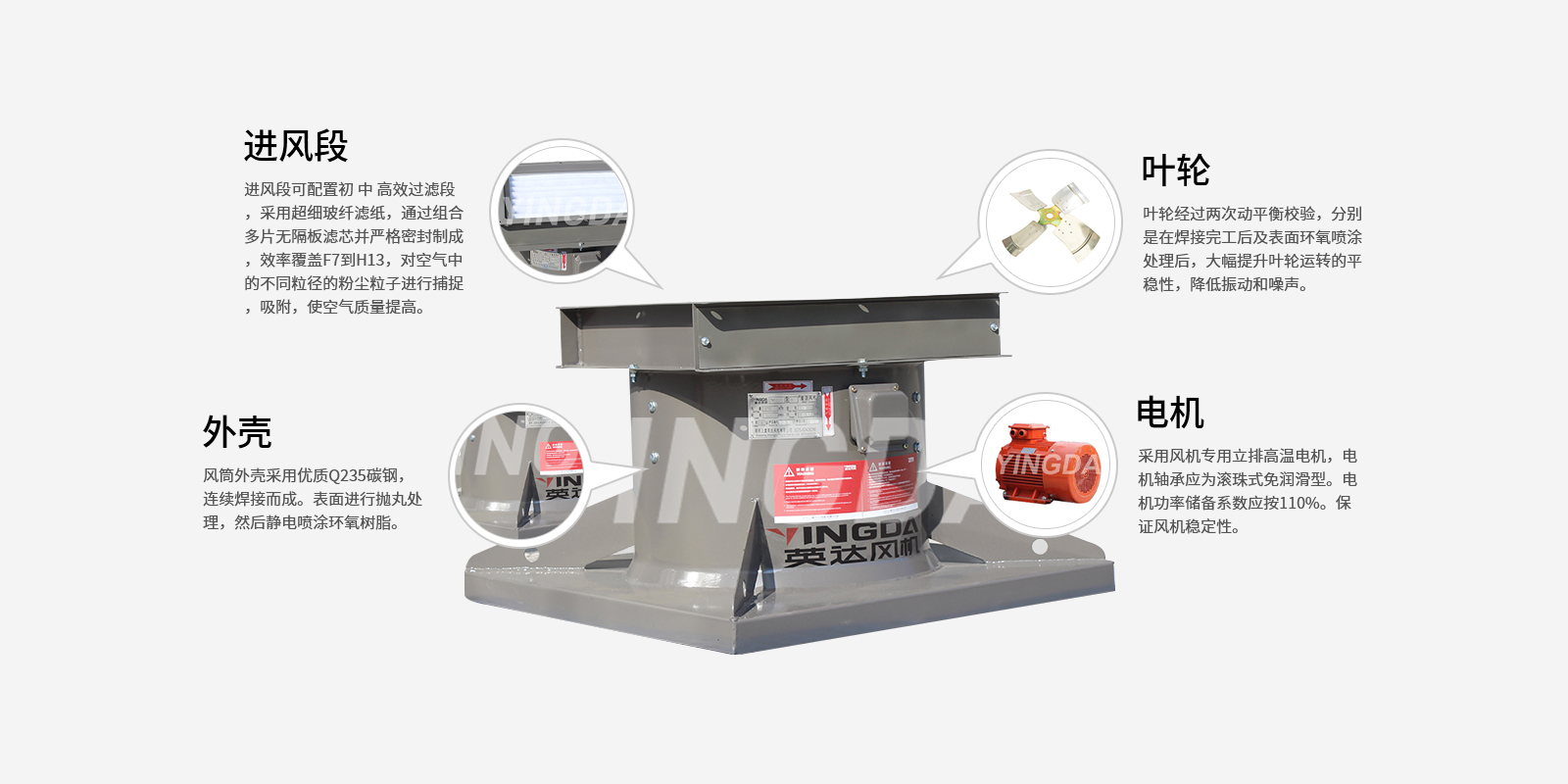 為了適應空氣凈化需要,風機可做成高效凈化型,根據要求要求做初效過濾, 中效過濾,高效過濾,及活性炭過濾。